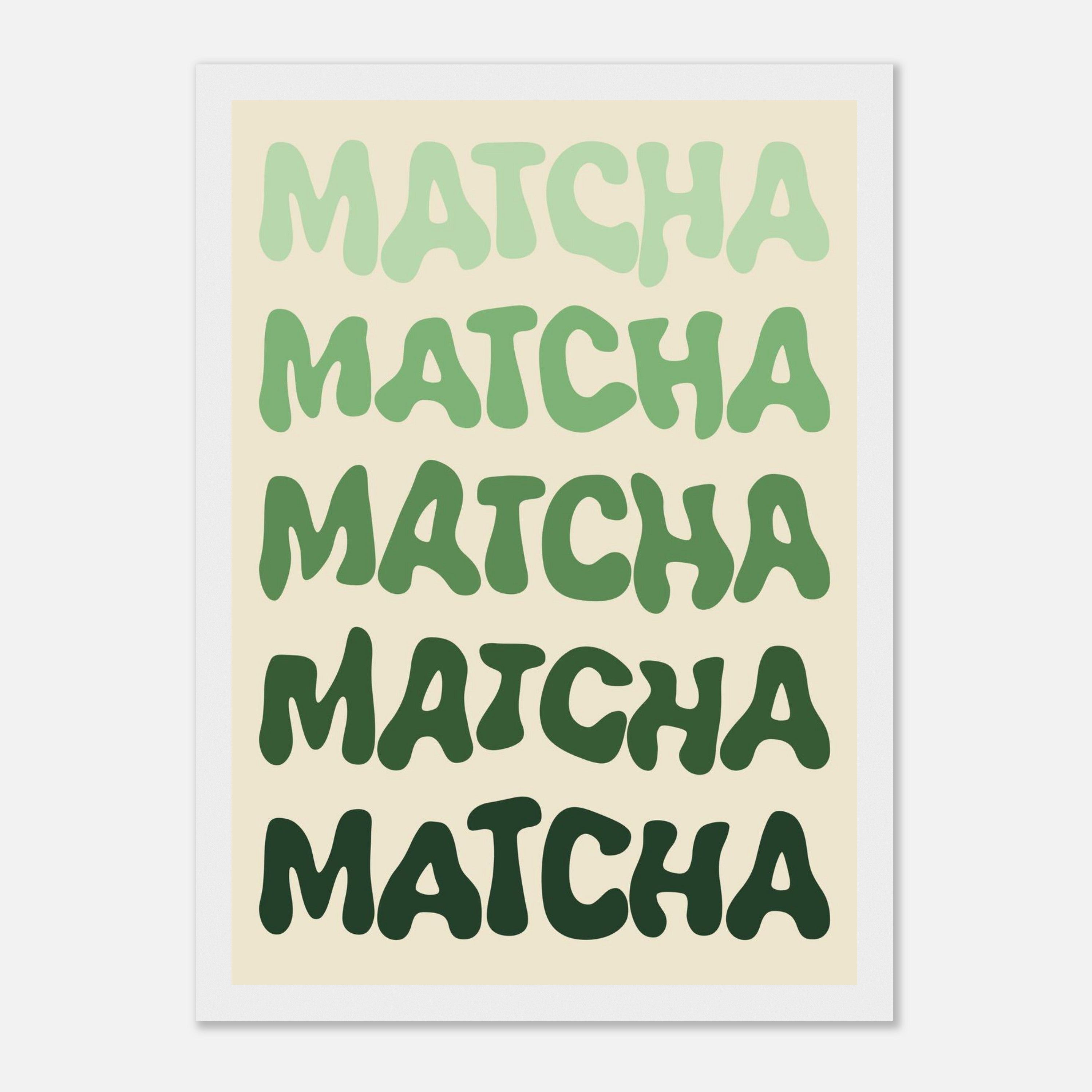 Matcha typography print in light to dark green shades. Simple and stylish, printed on high quality matte paper with frame options available.
